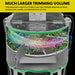 Equipped with adjustable motor and fan speeds, the T250pro gives growers precise control over trimming performance. The stainless steel blade and unique tumbling system maintain bud integrity and flavor. With compact dimensions, a 0.2 cubic foot capacity per batch, and dual-speed operation modes, this trimmer is ideal for home growers seeking professional-grade efficiency and potency retention.